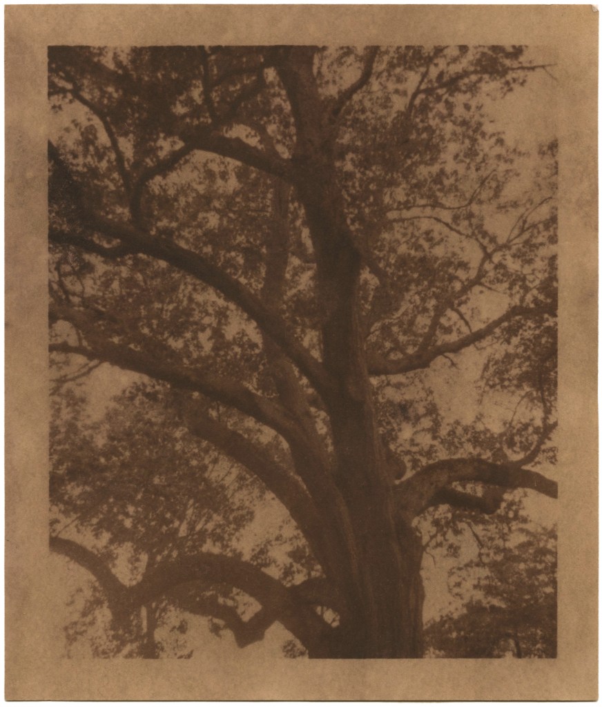 These cyanotypes show three trees in varying stages of decay. The differing tonalities, fading from a rich brown to a pale orange, arise from the toning process. Natural materials are taken from each of the trees, and tannins extracted from them replace the typical blue tone of a cyanotype. As the life fades from the trees, so too, does the color produced by their material. And yet, a part of them lives on, chemically bound to their own likenesses.