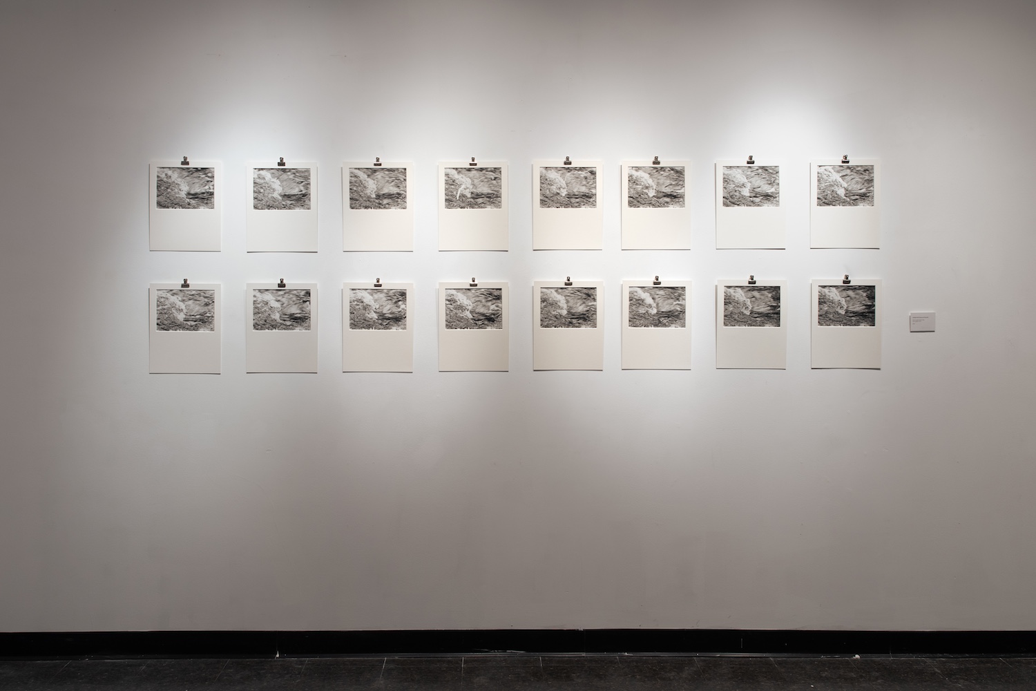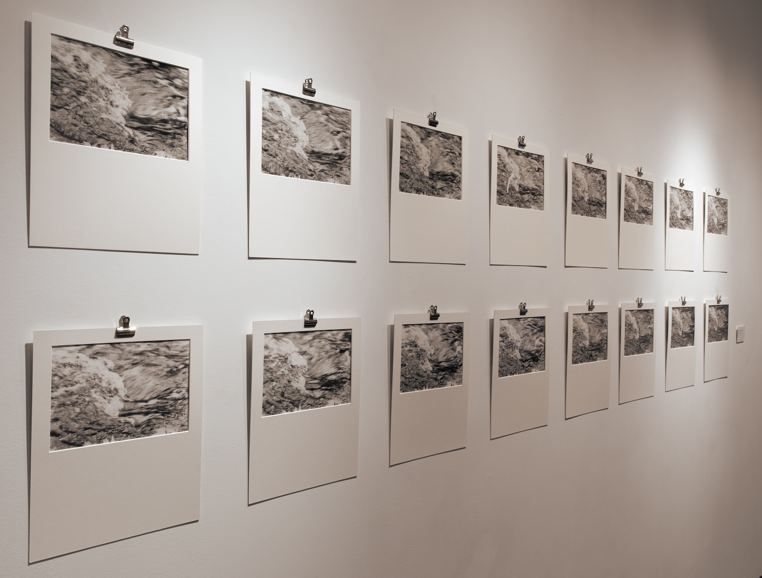 This set of prints was shot on 16mm motion picture film at 16 frames per second, for a total timescale of 1 second represented in the series. Using homemade equipment, the film was hand-developed and enlarged in the darkroom. A short, arbitrary moment of rushing water is captured across these frames, and the motion that emerges in the space between them becomes the subject—a piece as much about the abstract phenomena of time as the physical phenomena of nature.