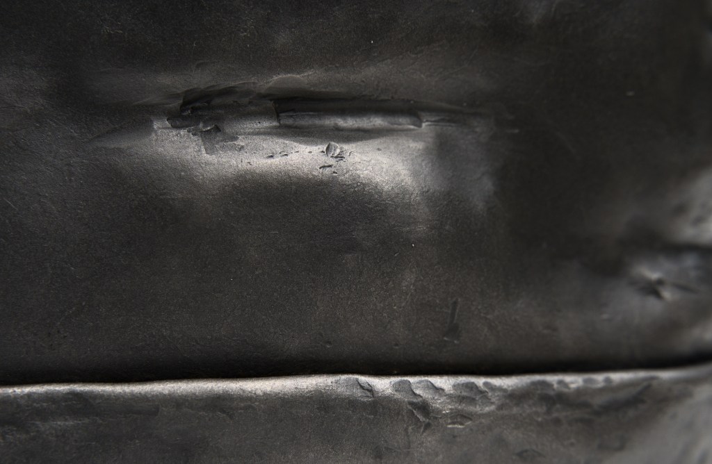 Created during a two-week blacksmithing workshop at Haystack Mountain School of Crafts, this piece is an attempt to create a sculptural photographic object from steel. Created using a combination of traditional forging techniques and digital modeling and fabrication, “Asymptote” mimics the undulating and folded forms of a specific stone face, just minutes from the blacksmithing studio at Haystack.