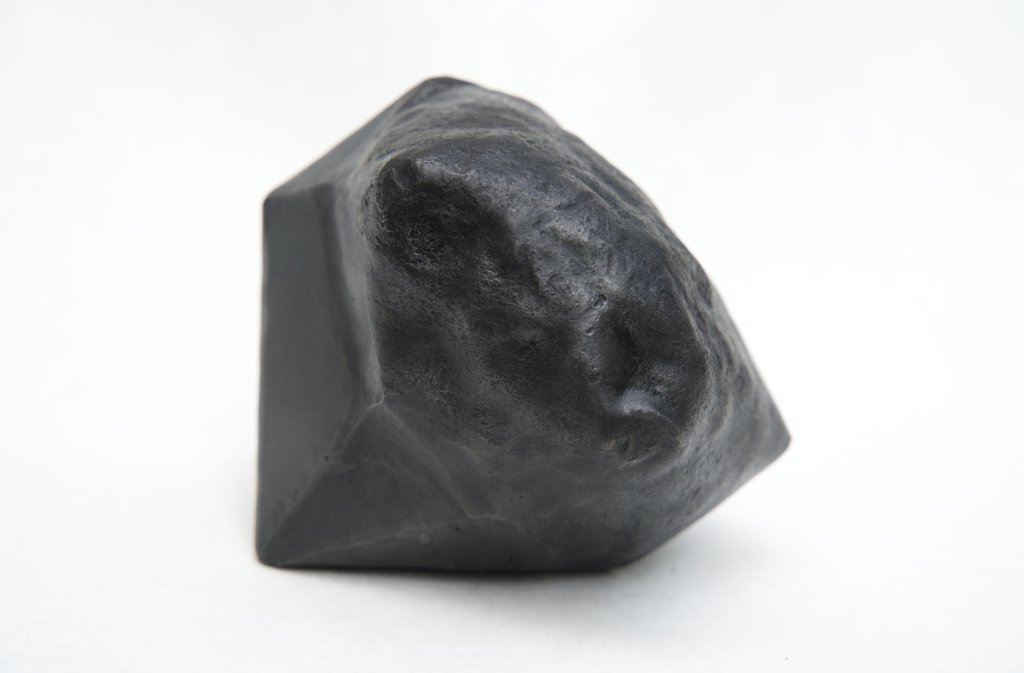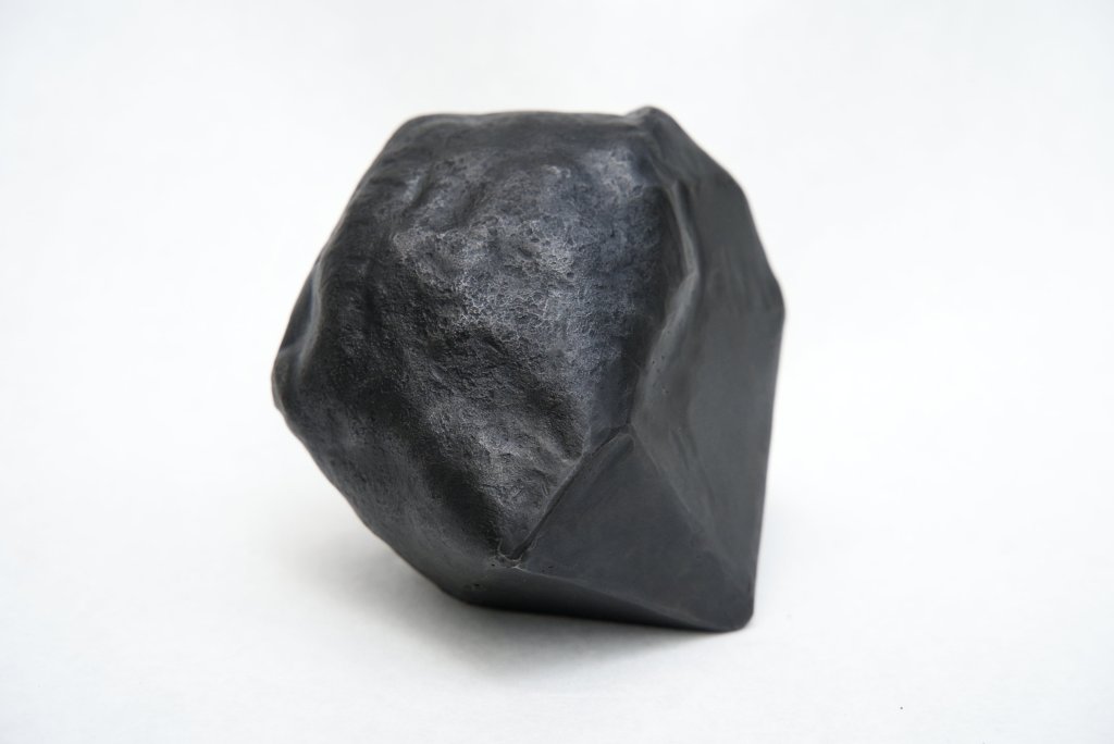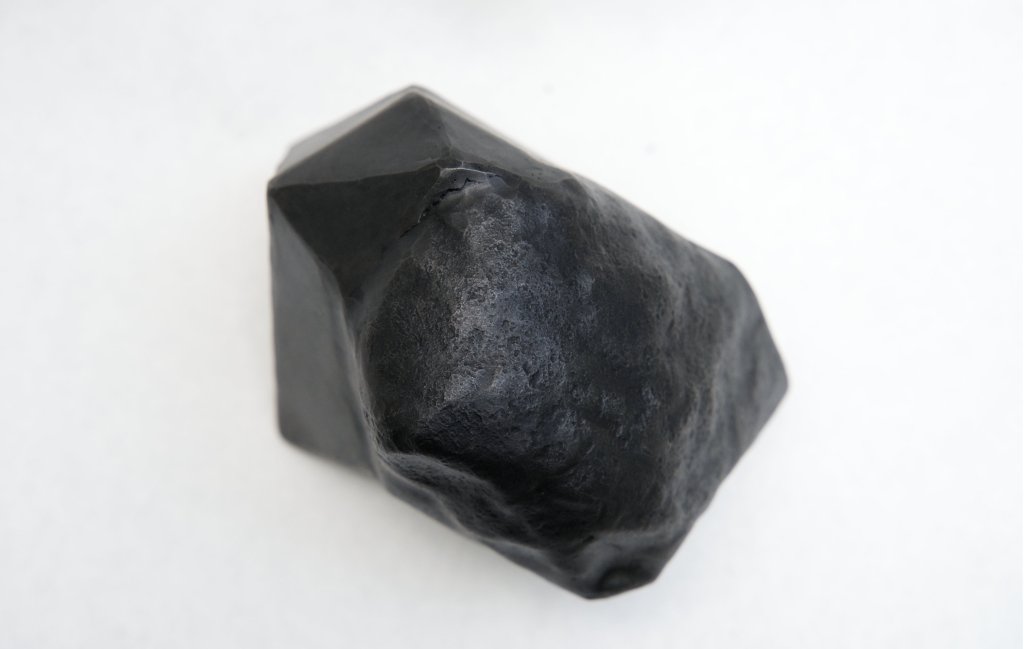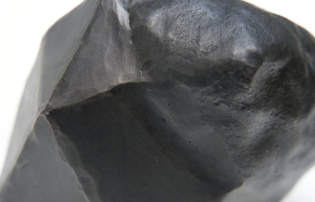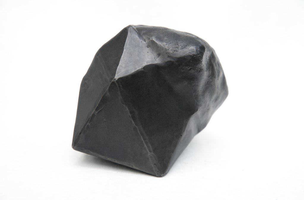 Created during a two-week blacksmithing workshop at Haystack Mountain School of Crafts, this piece takes inspiration from the glacial landscape of Deer Isle, Maine. Created using a combination of traditional forging techniques and CAD/CAM, “Rendering…” explores the relationship between natural objects and their invisible underground structures. Taking inspiration from videogame glitches, the polygonal surfaces were modeled to fit tightly to the hammered and textured organic surface, and fabricated using CNC plasma cutting.